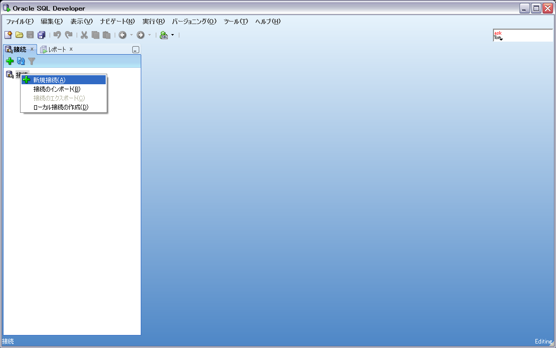 1.[接続]を右クリック、[新規接続]を選択する。