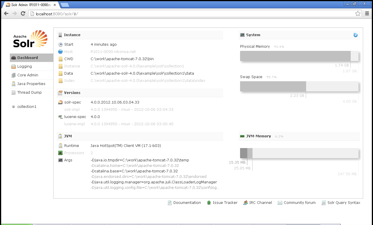 ※そのうちSolr4.0+Jetty(同梱)の手順も書いておこうと思う。